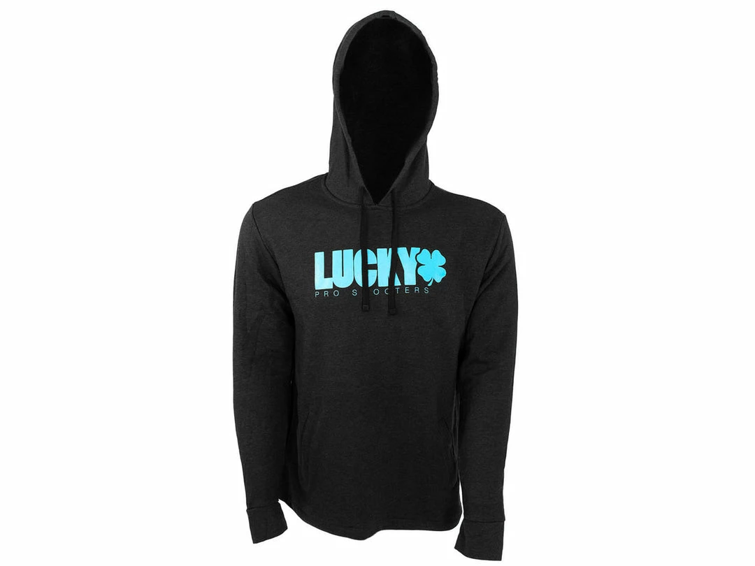 We start with a great cotton/poly blend, lined hoodie, and add our Lucky Solid Logo on the front to style it up. Nice and warm with tie straps on the hood for those really cold days.