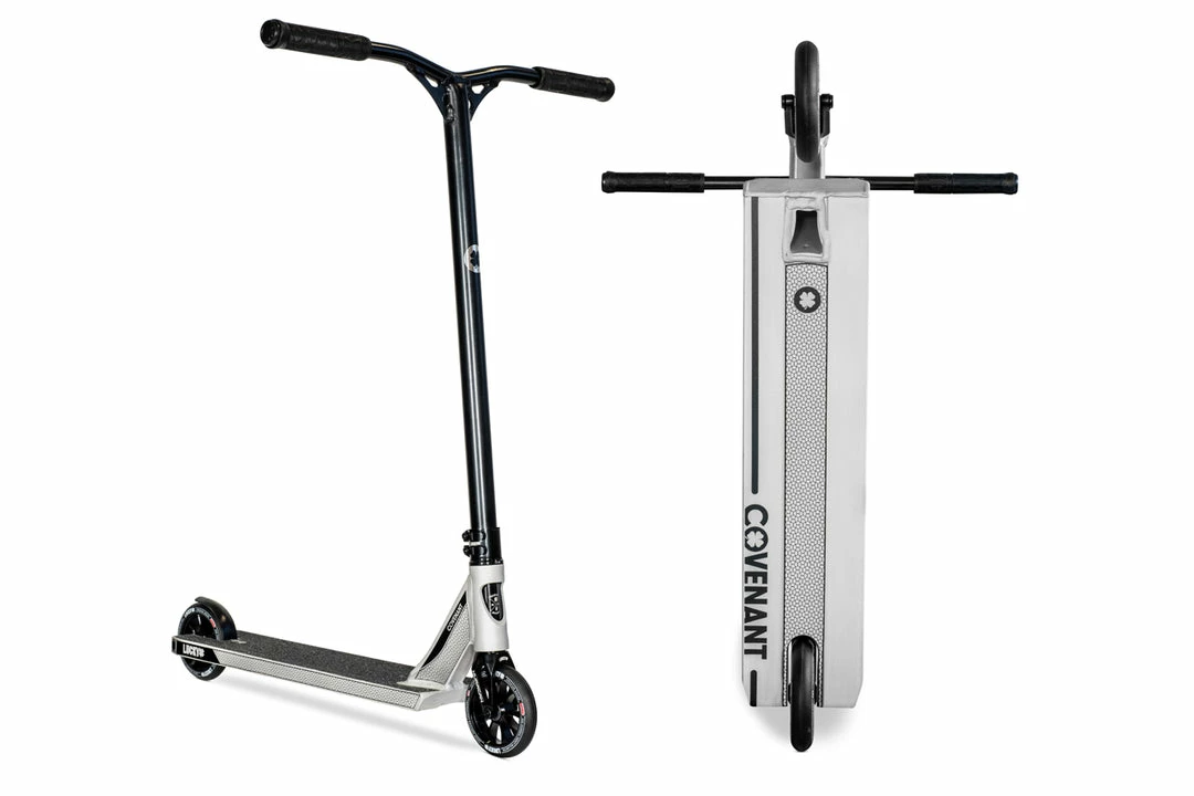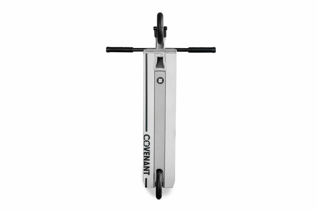 Introducing the 2022 COVENANT™ – The do-it-all scooter for riders who want to go big at your favorite park or the back yard! The 2022 COVENANT™ for the first time ever comes with an Aluminum AirBar™ at 25” (635mm) Tall and 24” (610mm) Wide, a Black Anodized IHC Huracan™ Fork, and a 21.5” (546mm) Long and 5.0” (127mm) Wide Deck. Also for the first time the Toaster Wheels™ come in 120mm and are the perfect fit for this complete. Weighing in at only 7.6lbs (3.4 kgs), the COVENANT™ is ready for an all-day shred session. We teamed up with scooter industry legend Ryan Upchurch for the Deck and Bar graphics really giving this Scooter the ultimate finish. Hit the park or the streets; the world is your stomping ground with the COVENANT™!