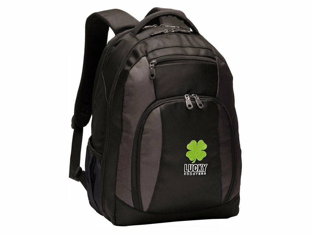 The Lucky Scooters Logo rider travel backpack is a must-have for any rider who loves stashing their goods for those longer journeys while still maintaining their steez.
